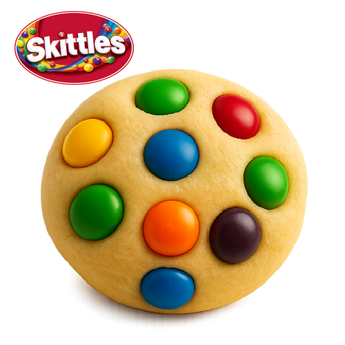Colorida, alegre y llena de sabor. Esta galleta especial está cubierta con Skittles que aportan una explosión frutal en cada bocado. Su exterior doradito y su interior suave se mezclan con el toque ácido y dulce de los caramelos, creando una experiencia divertida y diferente. ¡Una galleta que brilla con todos los colores del sabor!