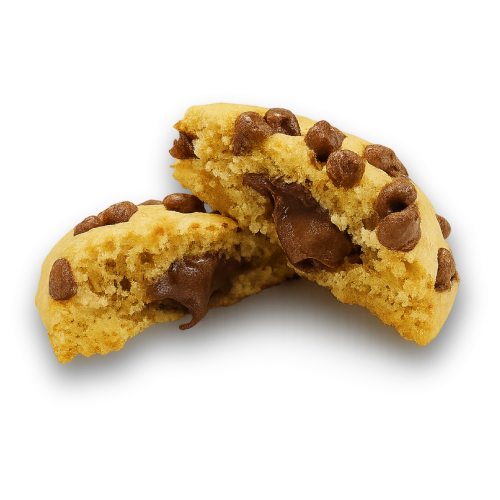 Una galleta de textura suave y ligeramente chiclosa, con un exterior dorado que combina lo mejor de una masa clásica con un toque artesanal. Su superficie está decorada con generosas gotas de chocolate que se funden sutilmente al hornearse, creando un contraste irresistible. Al partirla, revela un corazón cremoso de Nutella que se desliza con intensidad avellanada y achocolatada. Es una explosión de dulzura, ideal para quienes buscan una experiencia indulgente y reconfortante en cada bocado.