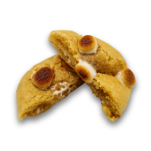 Una galleta suave y esponjosa, con un corazón melcochudo y una superficie decorada con masmelos dorados y ligeramente tostados que aportan una textura pegajosa y dulce. En su interior, un relleno cremoso de café sorprende con su sabor profundo y aromático, equilibrando perfectamente la dulzura del masmelo. Cada mordida es una experiencia reconfortante y sofisticada, ideal para quienes buscan una combinación única entre lo clásico y lo estimulante.